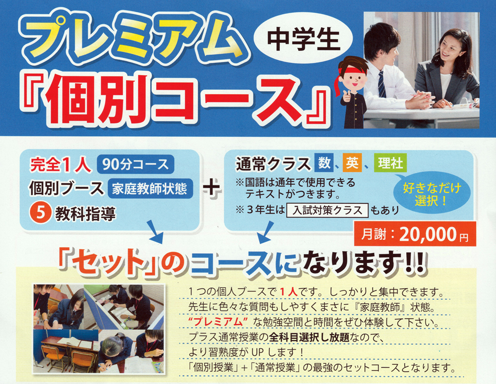 ※プレミアム「個別コース」は「枠」が埋まり次第終了です。