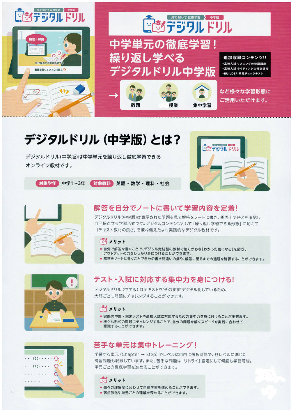 - 自宅はもちろん、塾の空き時間、自習室でもいつでも使用可能!